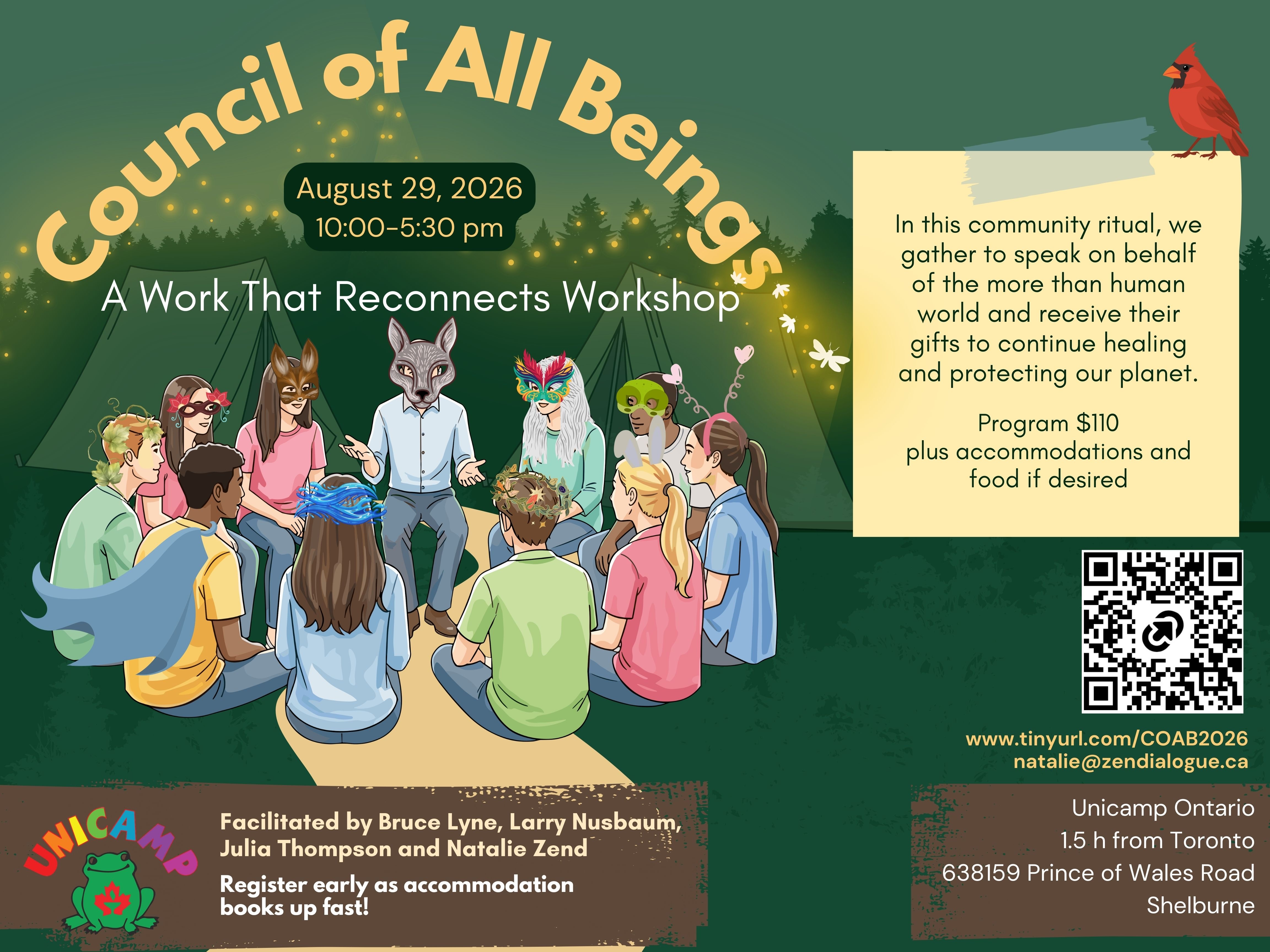 As the plants start to spring to life around us, I wanted to send out a few notes of groups and an opportunity to participate in A Council of All Beings run by four co-facilitators at Unicamp.